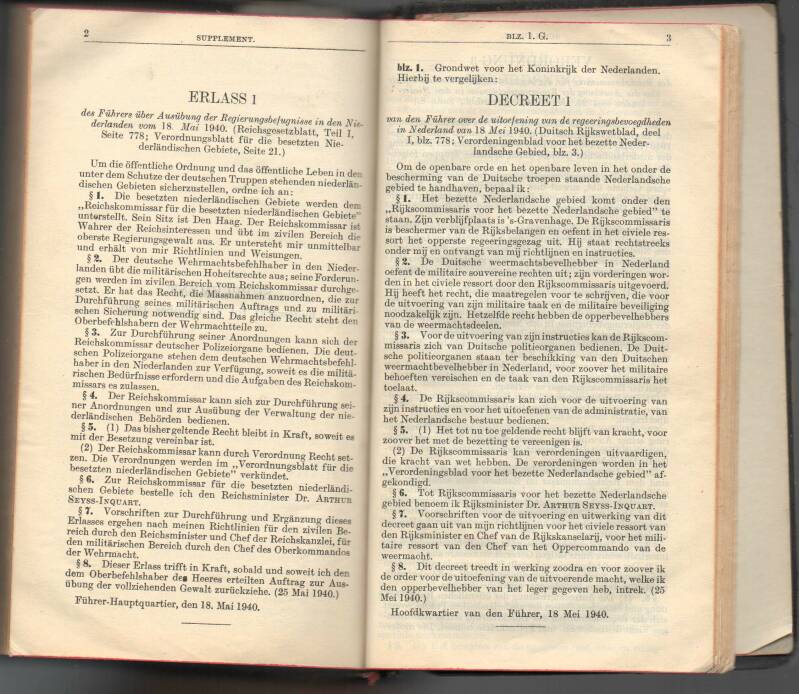 Wageningen, hotel ‘De Wereld’, 5 mei 1945: Reichelt (l.) en Blaskowitz. Op de rug gezien kapitein Molnar (tolk) en Foulkes.Wageningen, 5 mei 1945: v.l.n.r. Reichelt, Blaskowitz, Kitching (chef-staf), Foulkes, Molnar en prins Bernard.De handtekeningen onder de Orders on the Surrender van Foulkes (l.) en Blaskowitz, 5 mei 1945, 16.30 uur.Wageningen, Aula, 1940De gedetailleerde technische uitwerking van de bevelen en nadere afspraken in bijlagen kwamen de volgende dag aan de orde. De bijeenkomst was die zondag 6 mei in de aula van de landbouwhogeschool. Daar werkten Canadezen en Duitsers met kaarten en documenten de details verder uit. Onderweg naar Wageningen had Blaskowitz informatie afgegeven aan de bevelhebber van de Britse 49ste (West Riding) Infanterie Divisie.