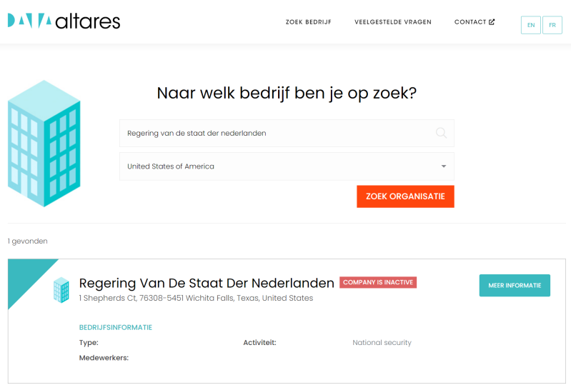 IS EEN BEDRIJF INGESCHREVEN IN WASHINGTON D.C.